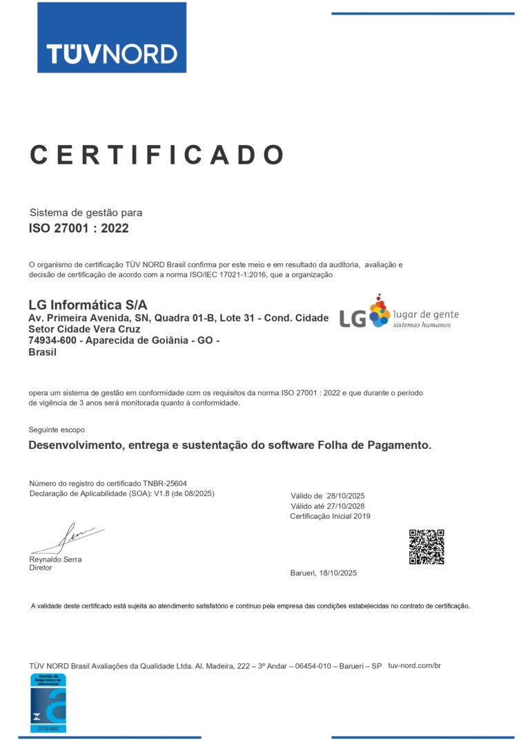 Esta certificação representa mais um avanço em nosso sistema de gestão, reforçando a confiança e a transparência nas soluções oferecidas pela LG em ambientes baseados em nuvem.