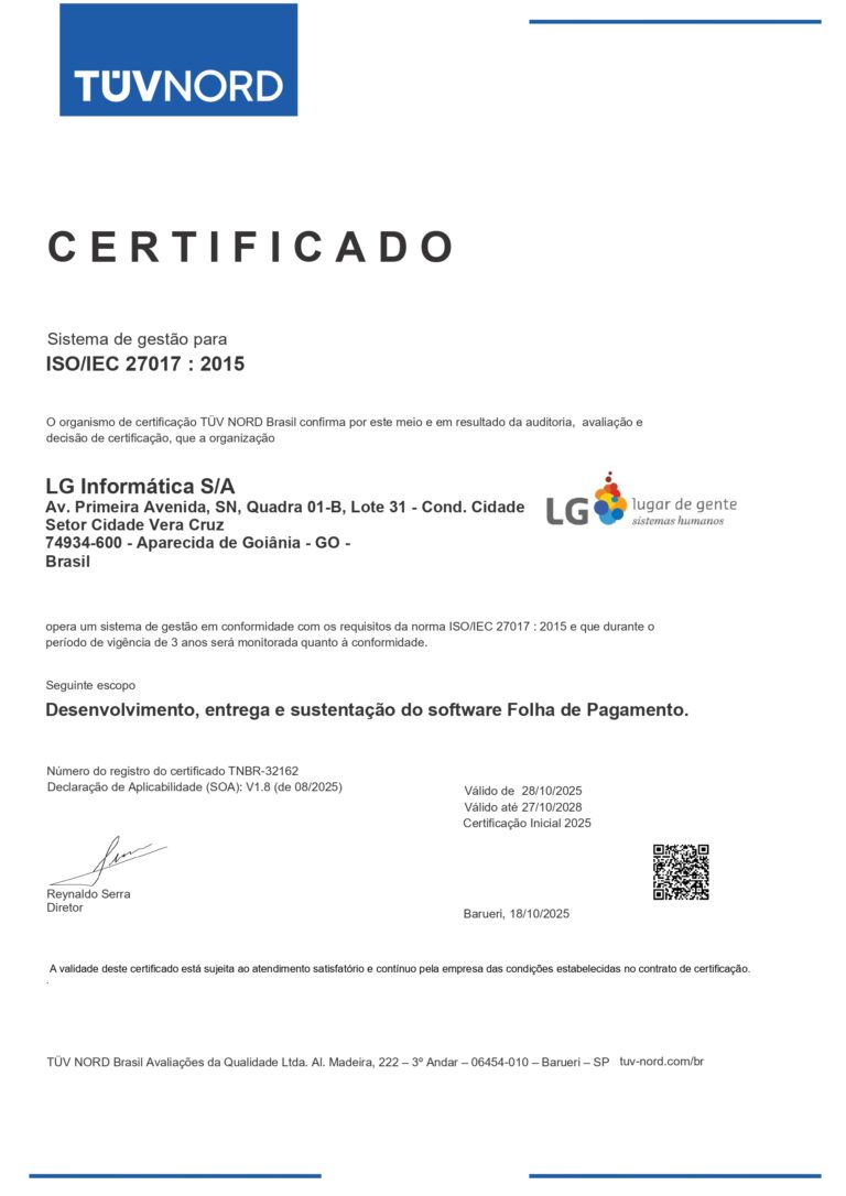 Conquistar esta certificação reforça o compromisso da LG lugar de gente com a adoção das melhores práticas internacionais para proteção de dados e operações em ambientes de nuvem.